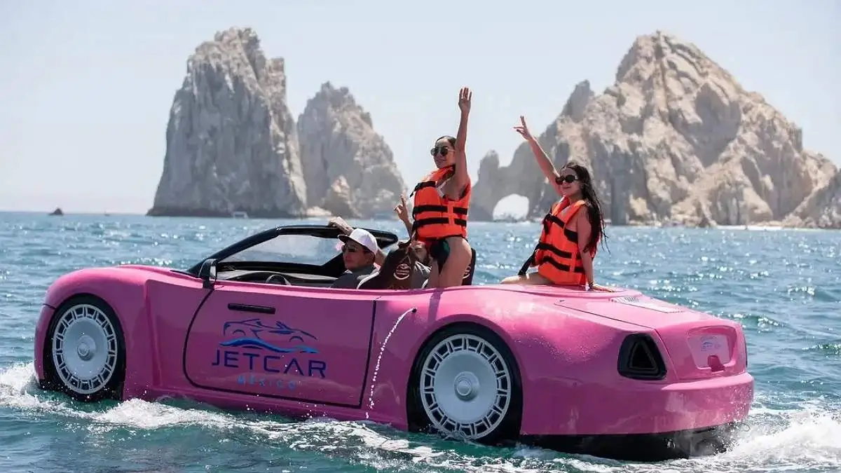 Un vehículo acuático fue visto muy cerca del Arco de Cabo San Lucas, generando atención entre visitantes y usuarios de redes.