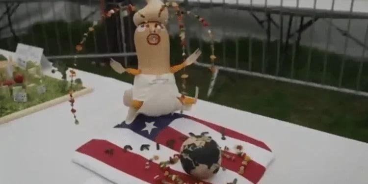 Durante esta edición, los asistentes pudieron observar representaciones como “Cornclave”, una instalación con figuras de cardenales hechas con mazorcas de maíz, aludiendo a la reciente elección papal.
