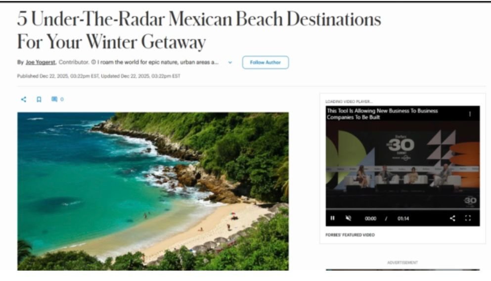 El listado en el que también aparecen playas de Oaxaca, Jalisco, Quintana Roo y Yucatán forma parte de una selección enfocada en destinos costeros en México los cuales, según Forbes, ofrecen opciones distintas para viajes de invierno.